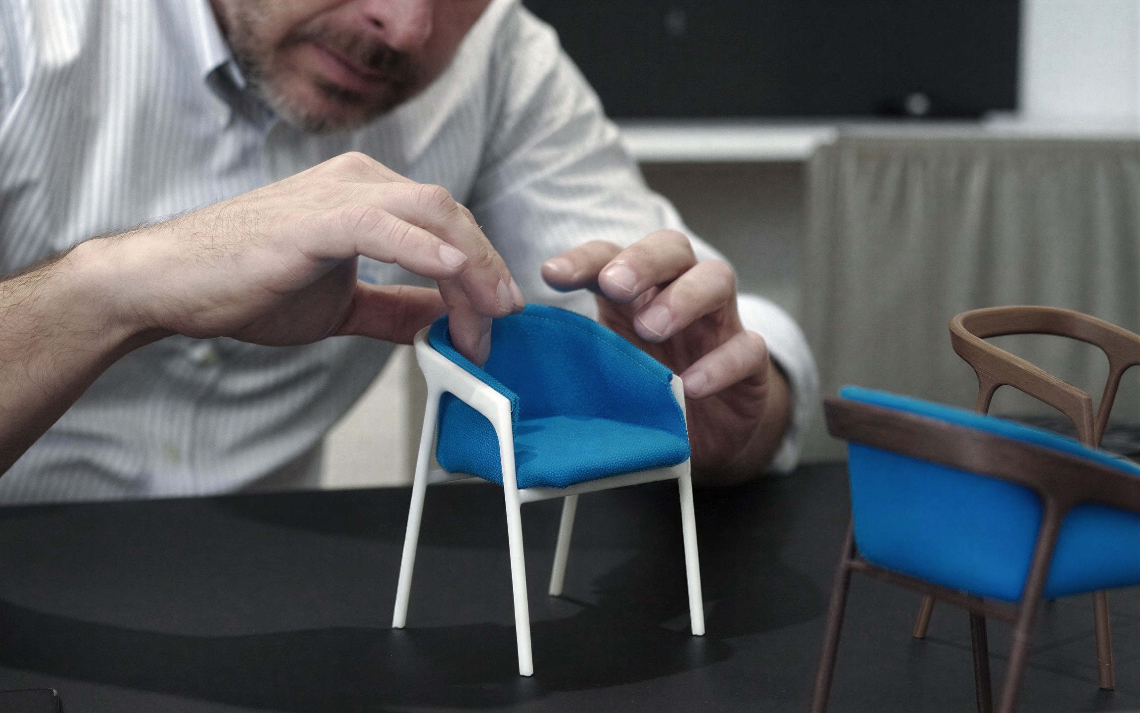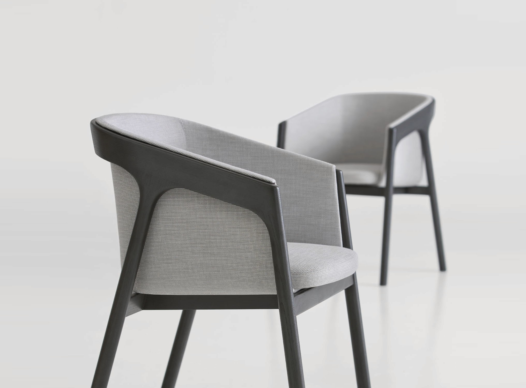 Mulholland brings together two modes of making. A solid ash frame is paired with a discreet injection-molded shell, combining hand and industrial craft into a single, resolved form. In profile, the chair reads as a clear graphic line, with the shell appearing to suspend within the frame. The result is a composition that balances structure and lightness.
